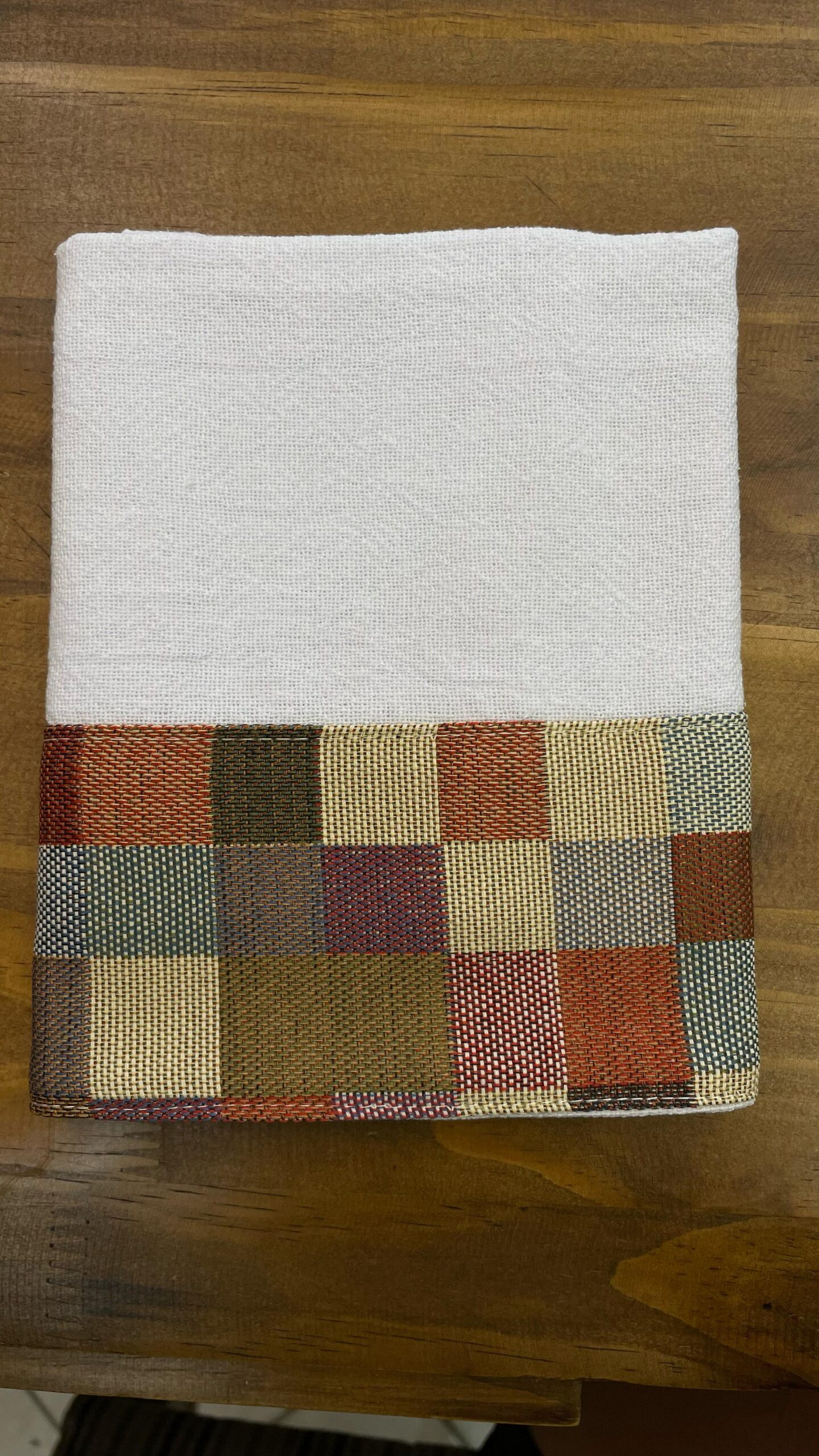 Pano de prato com barrado em linho.